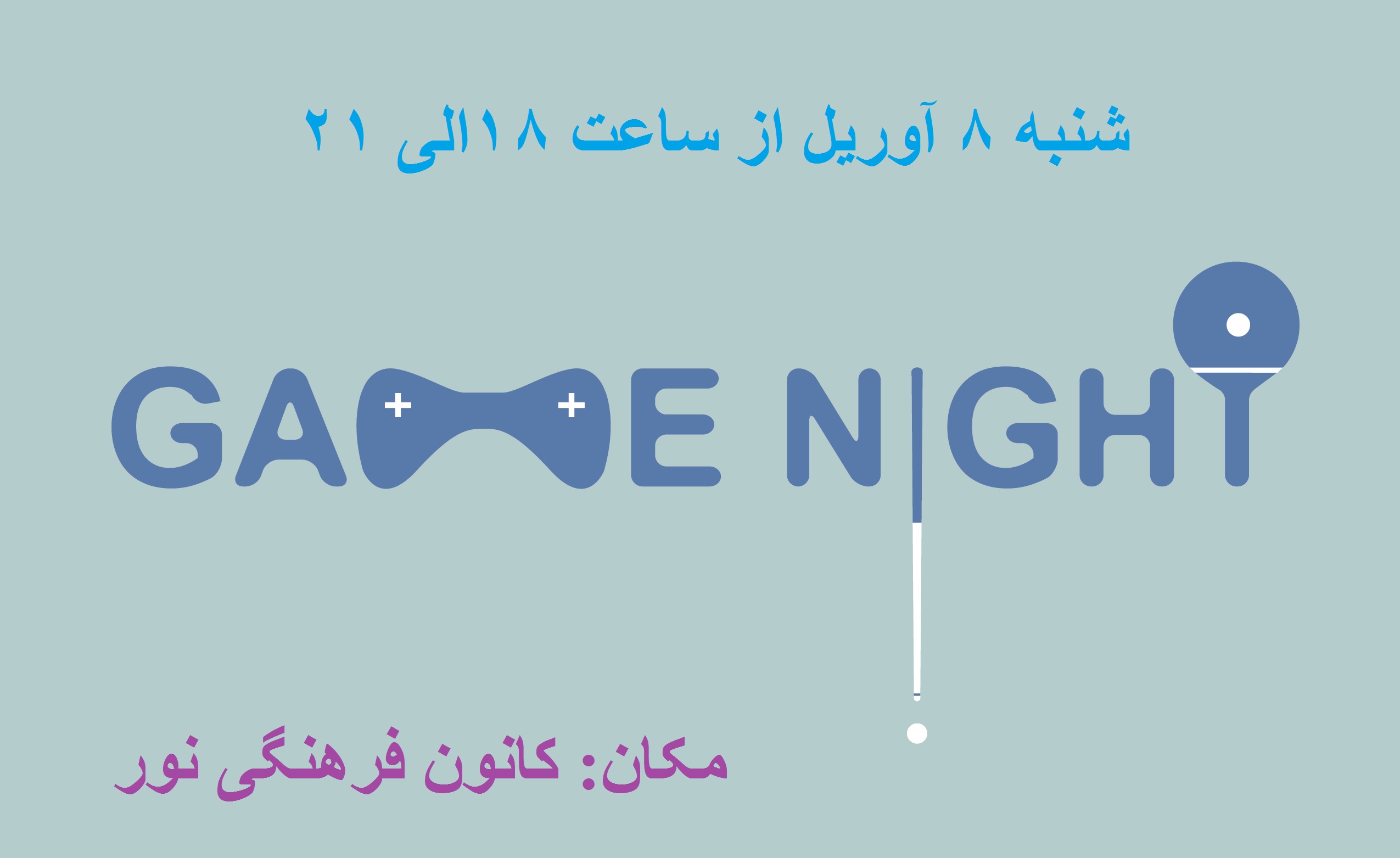 همانطور که اطلاع دارید کانون فرهنگی نور سعی دارد که در هر آخر هفته برای شما عزیزان برنامه داشته باشد. شنبه ۸ آوریل از ساعت ۱۸الی ۲۱برنامه گیم نایت شامل پینگ پنگ، فوتبال دستی و .... برای عزیزان تدارک دیده شده است.