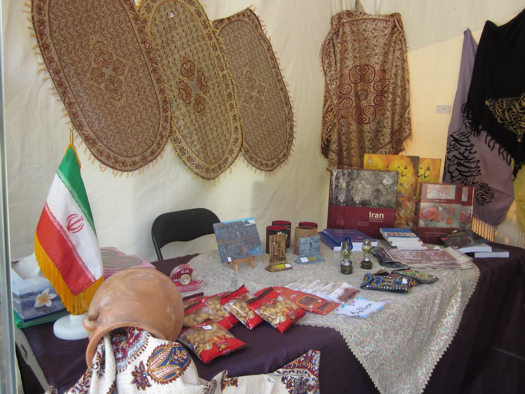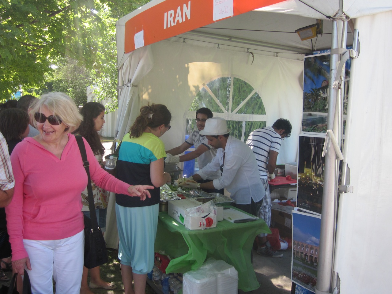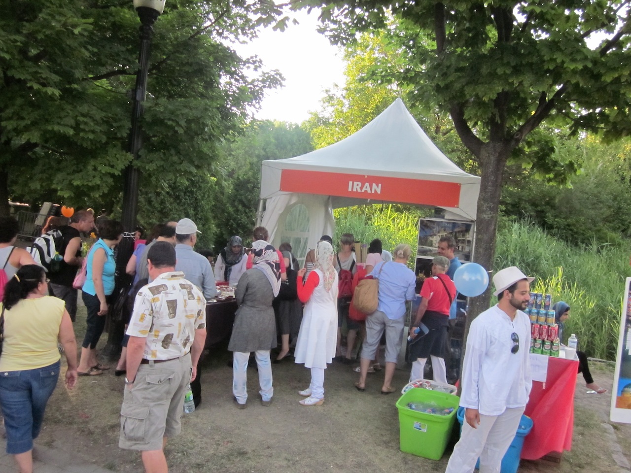در این غرفه نیز بیش از ده نفر از ایرانیان داوطلب ساعت های طولانی در امور مختلف مانند پخت آش، کباب و جوجه، فروش و تحویل انواع غذا، دسر و شیرینی به مشتری و ارائه توضیحات درباره مواد تشکیل دهنده هرغذا، آماده سازی شربت آب لیمو و دیگر نوشیدنی ها و... مشغول کار وتلاش بودند.