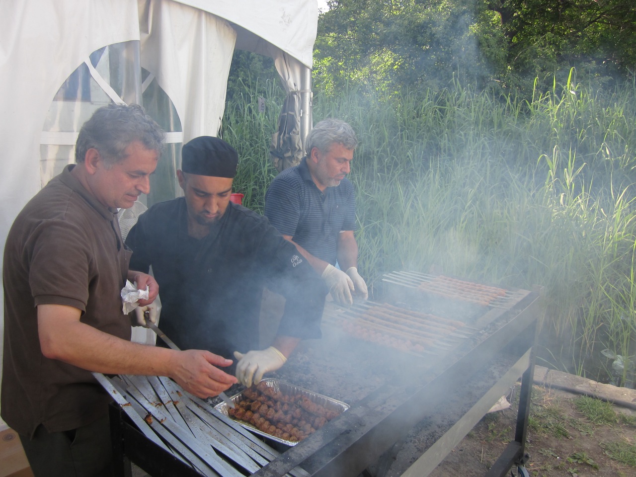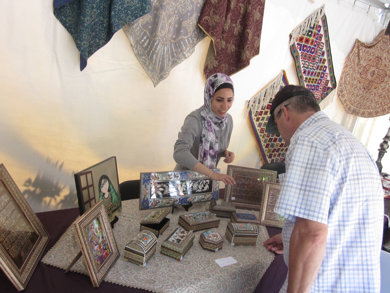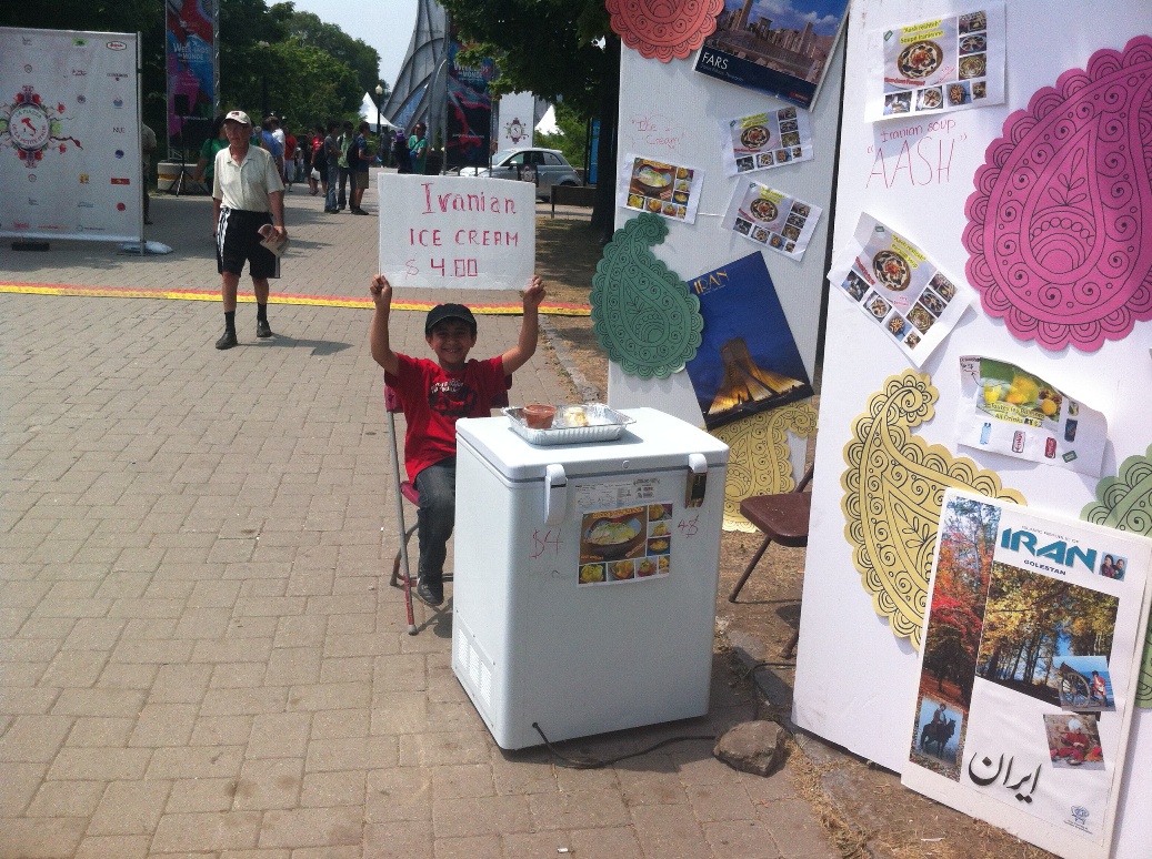 در این غرفه نیز بیش از ده نفر از ایرانیان داوطلب ساعت های طولانی در امور مختلف مانند پخت آش، کباب و جوجه، فروش و تحویل انواع غذا، دسر و شیرینی به مشتری و ارائه توضیحات درباره مواد تشکیل دهنده هرغذا، آماده سازی شربت آب لیمو و دیگر نوشیدنی ها و... مشغول کار وتلاش بودند.